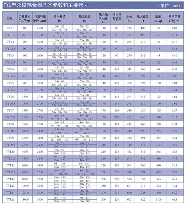 九、TYLZ型永磁耦合聯(lián)軸器結(jié)構(gòu)圖及主要參數(shù)