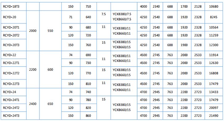 四、RCYD系列懸掛帶式永磁除鐵器主要技術(shù)參數(shù)、外形尺寸 執(zhí)行標(biāo)準(zhǔn):JB/T8711